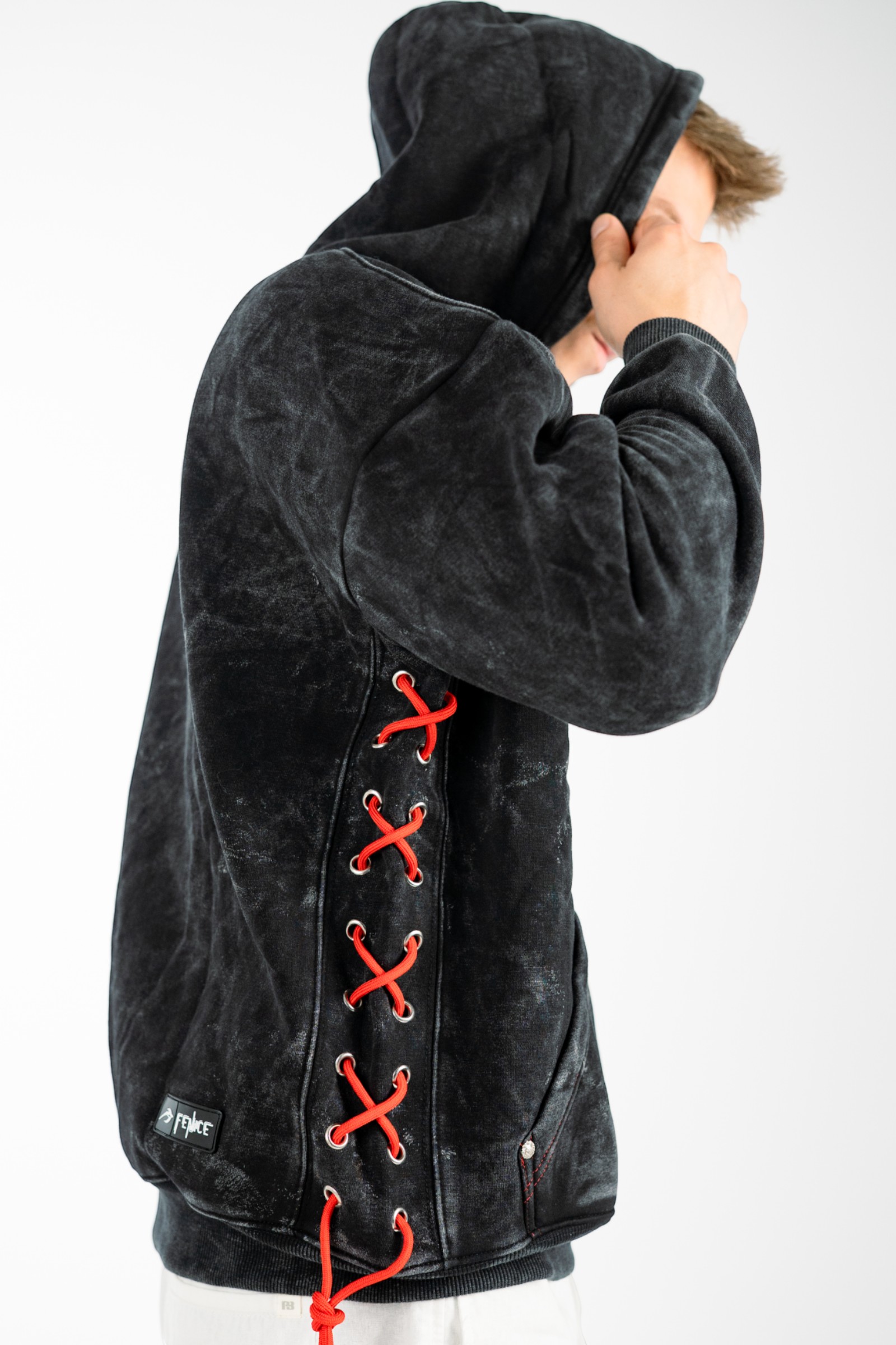 Legacy Lace-Up Hoodie in Washed Black